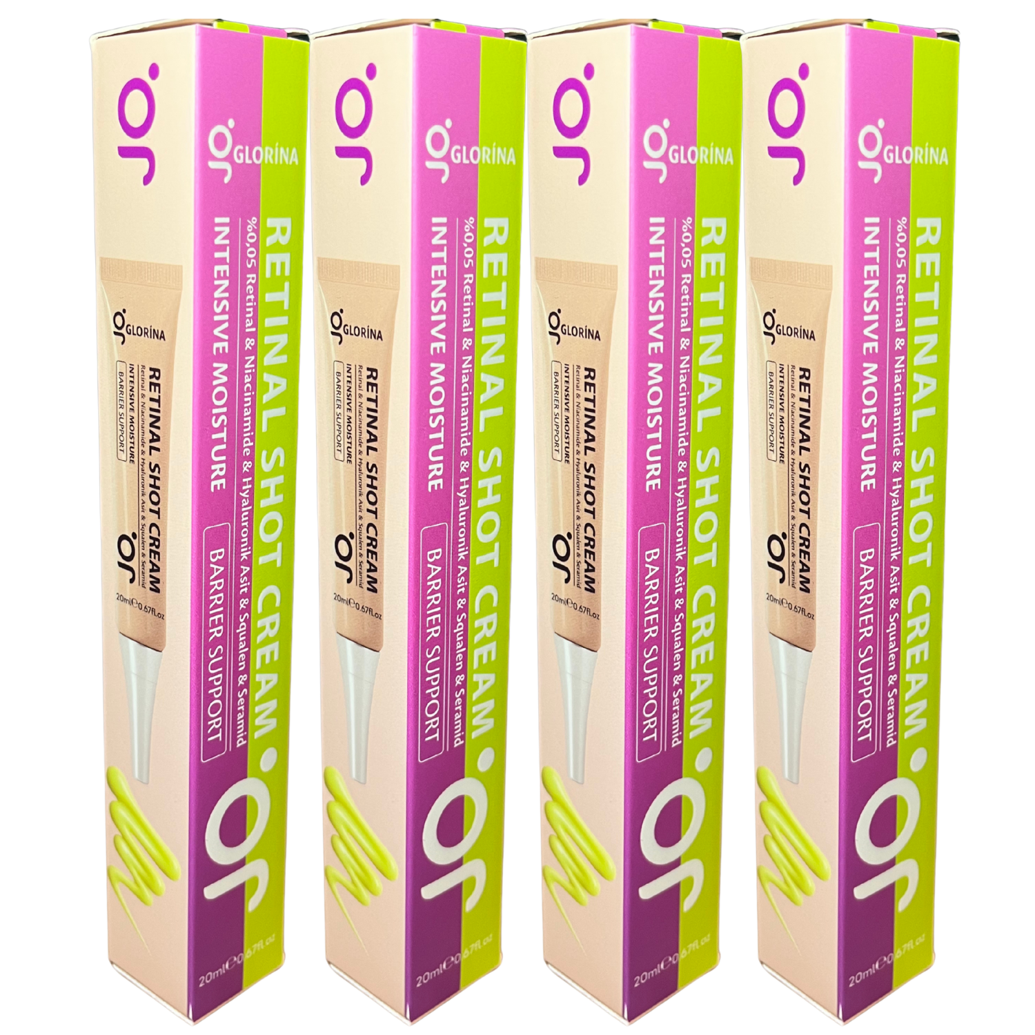 Glorina Retinal Cream, donuk ve pürüzlü cilde sadece 14 günde parlaklık, pürüzsüzlük ve tahrişsiz bir yenilenme kazandırır.